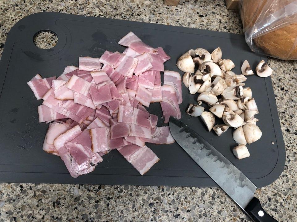 먼저 양송이와 베이컨 (새우) 를 손질하여 줍니다. 이 때 베이컨은 반으로 4번을 잘라 8등분으로 해주시면 됩니다. 사실 4등분으로 하여도 좋습니다. 큰 차이는 없습니다. 새우의 경우 까져있는 상태로 만들어주시면 됩니다. 베이컨은 제가 워낙 크게 먹는 걸 좋아해서 큼직큼직하게 썰었습니다. 여기서 포인트는 베이컨을 사용하신다면 서로 붙지 않도록 잘 때어주는게 좋습니다. 붙은 채로 굽게되면 계속 붙어있을 가능성이 높기 때문입니다.
