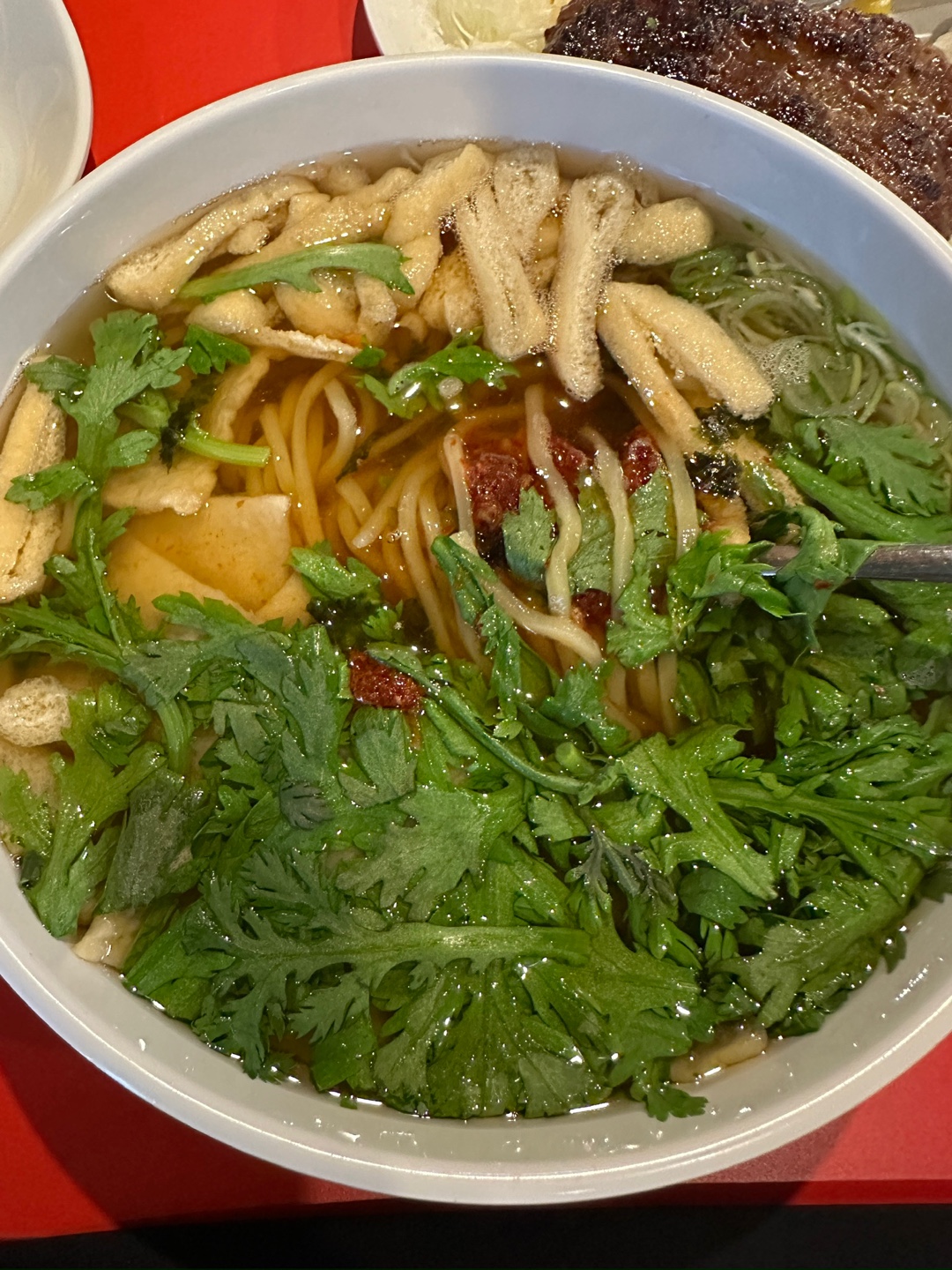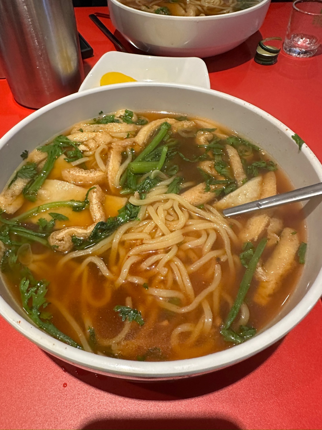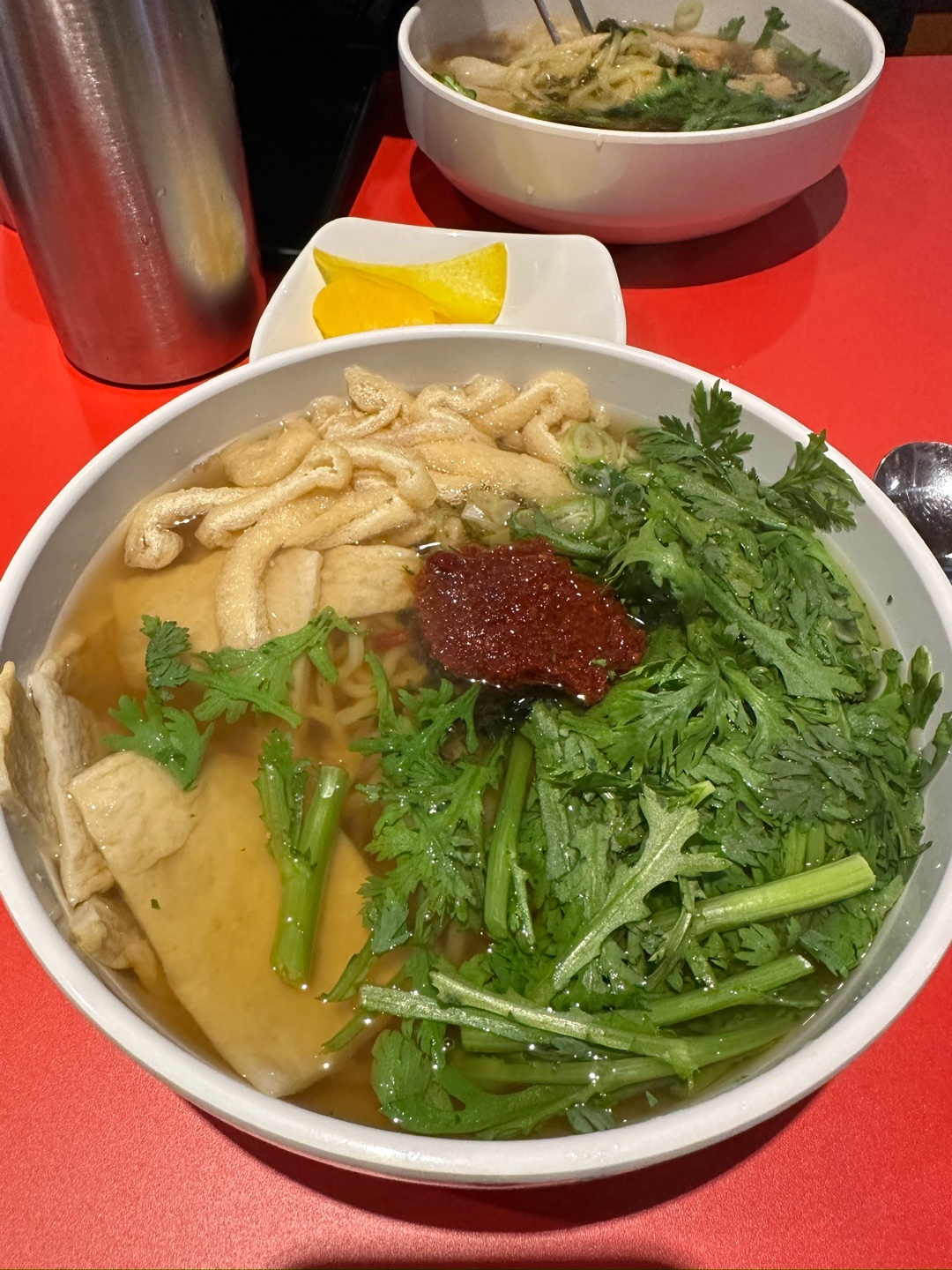 우동 먼저 보시면, 제가 살짝 섞어서 그런데 기본적으로 다데기가 위에 올라가있습니다. 먹기전에 잘 저어서 드시면 되겠습니다. 기본적으로 유부와 오뎅, 쑥, 파가 들어있고 특이하게 면은 중화면을 사용하였더라구요. 그래서 그런지 저 쫄깃하고 양념이 잘 베어있었던 것 같습니다. 정말 재밌는 점이 이장우 씨하면 가루 요리로 유명한데, 국물에 왠지 모를 가루들이 많습니다. 다데기도 가루 베이스로 만드신 것 같더군요. 양은 딱 성인 남성이 먹기 적당한 수준입니다. 많지도 적지도 않은 중간 정도 양인데, 뒤늦게 알게 된 사실이 있습니다.